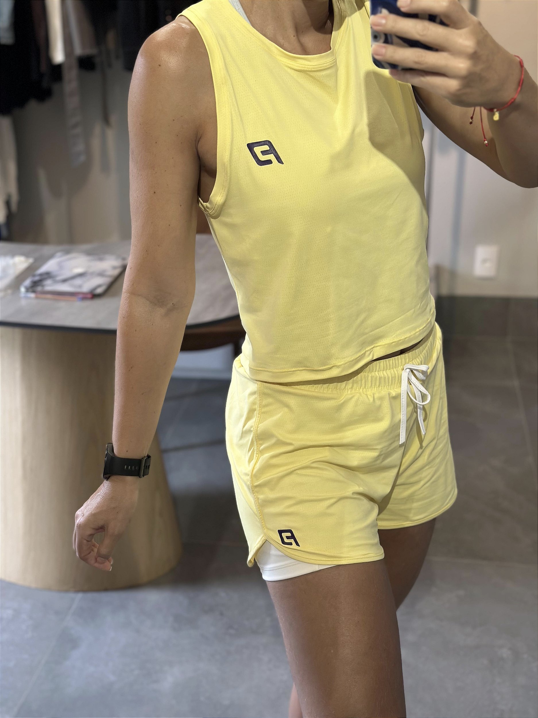 Conjunto de short (com short justo por baixo) e regata cropped ideal para treinos ao ar livre, práticas de musculação ou treinos em academia, oferece conforto térmico e sensação de frescor o dia todo. Seu cós alto com elástico garante segurança e ajuste ideal ao corpo, enquanto o cadarço para amarração oferece praticidade extra. A modelagem ampla com short justo por baixo evita marcações e promove total liberdade de movimento, tornando-se indispensável no guarda-roupa de verão da mulher ativa.